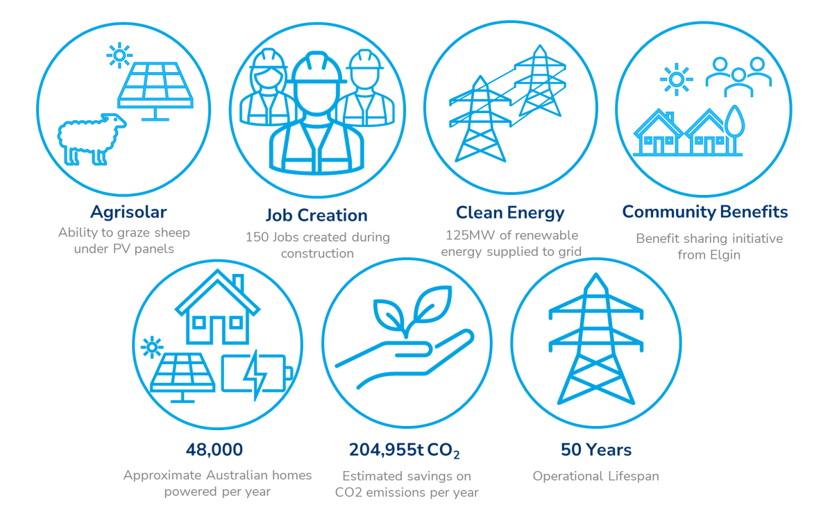In line with State and Commonwealth commitments to reduce carbon emissions by harnessing renewable energy, the proposed Morven Solar Farm has the potential to generate enough clean energy to power approximately 48,000 homes, reducing greenhouse gas emissions by 220,000 tonnes per year. The BESS is designed to store the solar energy generated during the day and discharge it at periods of high demand.